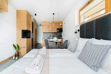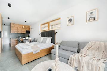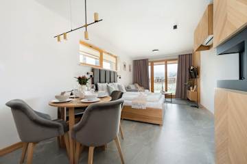 Wypoczywaj w komfortowym apartamencie w zielonej górskiej enklawie z widokiem na Giewont, w bezpośrednim sąsiedztwie Tatrzańskiego Parku Narodowego. Oferujemy naszym Gościom przestrzeń, która łączy podhalańską tradycję z nowoczesnością. Znajdziesz tutaj miejsce do wypoczynku na zewnątrz, plac zabaw dla dzieci oraz oczka wodne, które nadają urokliwy klimat.