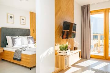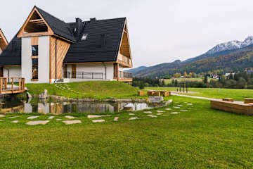 Wypoczywaj w komfortowym apartamencie w zielonej górskiej enklawie z widokiem na Giewont, w bezpośrednim sąsiedztwie Tatrzańskiego Parku Narodowego. Oferujemy naszym Gościom przestrzeń, która łączy podhalańską tradycję z nowoczesnością. Znajdziesz tutaj miejsce do wypoczynku na zewnątrz, plac zabaw dla dzieci oraz oczka wodne, które nadają urokliwy klimat.