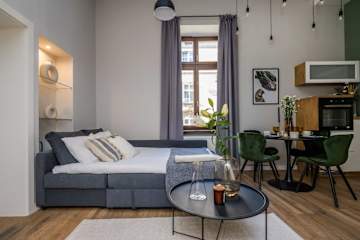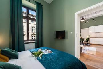 Stylowy apartament w samym sercu zabytkowej dzielnicy zaprasza wszystkich miłośników wnętrz i dobrego stylu na niezapomniany pobyt w Krakowie.