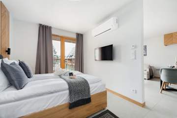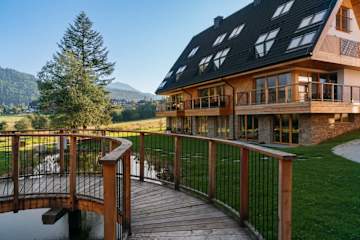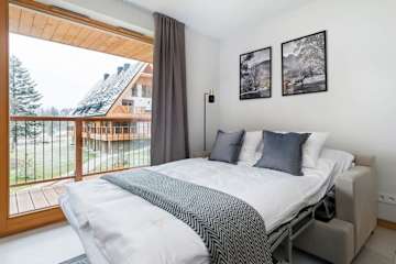 Wypoczywaj w komfortowym apartamencie w zielonej górskiej enklawie z widokiem na Giewont, w bezpośrednim sąsiedztwie Tatrzańskiego Parku Narodowego. Oferujemy naszym Gościom przestrzeń, która łączy podhalańską tradycję z nowoczesnością. Znajdziesz tutaj miejsce do wypoczynku na zewnątrz, plac zabaw dla dzieci oraz oczka wodne, które nadają urokliwy klimat.