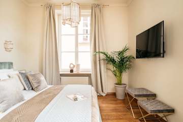 Obudź się w pięknym i nowoczesnym apartamencie, położonym tuż przy Rynku Głównym, w samym sercu zabytkowego Starego Miasta! Podczas pobytu skorzystaj z dostępu do słonecznego tarasu na dachu budynku, z którego roztacza się piękny widok na Zamek Królewski na Wawelu oraz szeroką panoramę Starego Miasta.